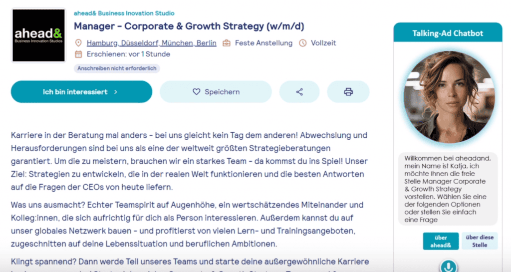 Talking Ad / Virtuelle Stellenausschreibungen